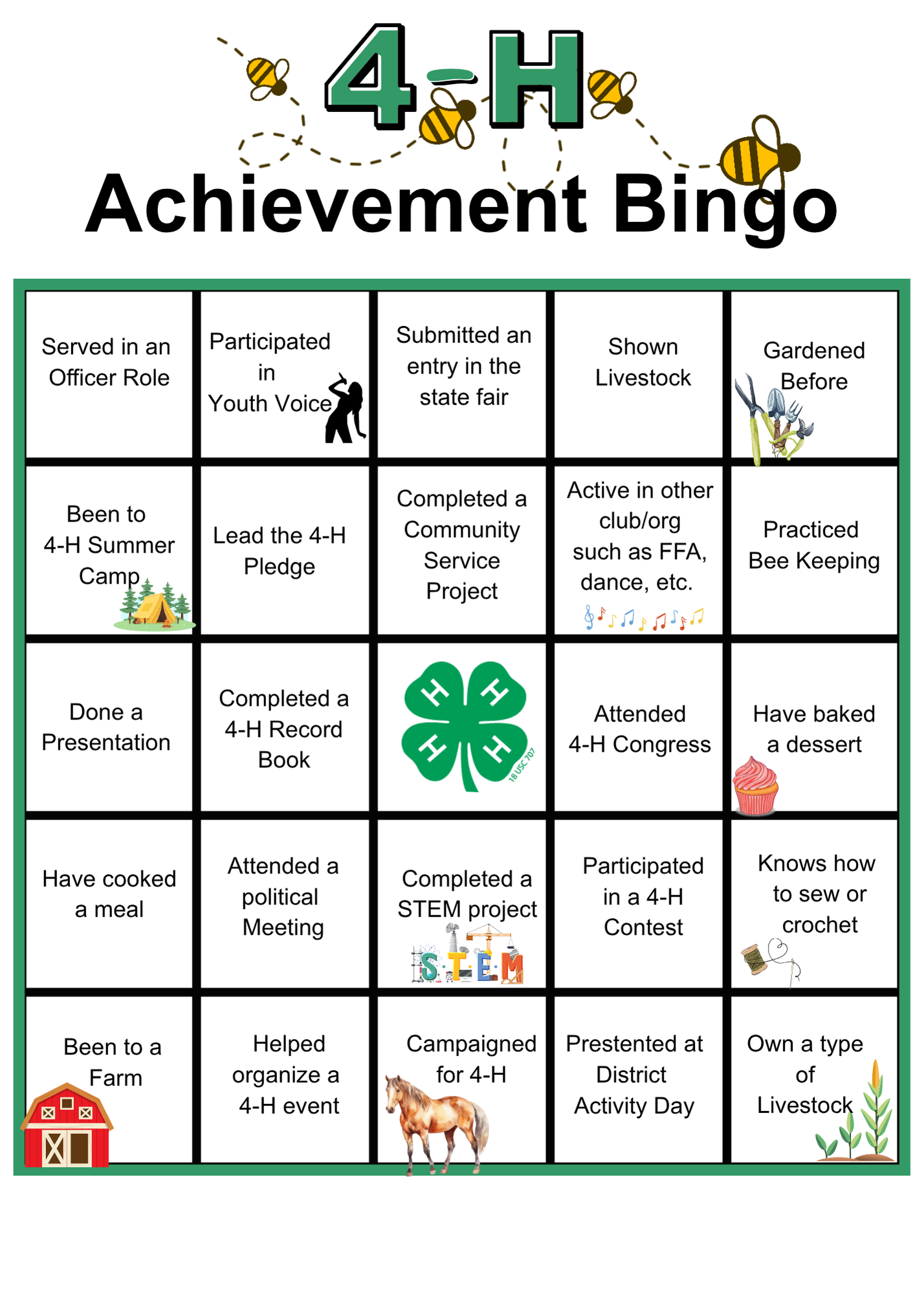 Download the 2025 4-H Achievement Bingo, and print however many you need.